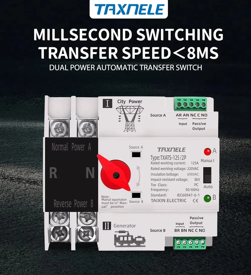 Taxnele Dual Power Automatic Transfer Switch (125A, 2P)